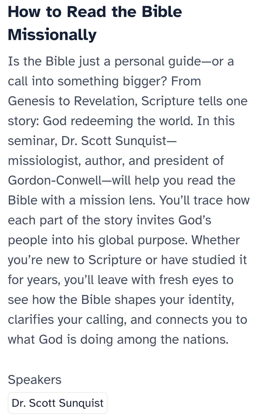 So, it’s a pretty big deal that we’re bringing the Forum on Missional Hermeneutics to the American Society of Missiology annual gathering in 2026. Likewise, Dr. Sunquist’s session here at Urbana 25 might be a sign of the times.