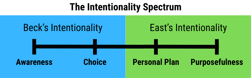 The question of what that intentional response might be is a separate matter. The possibilities lie on a spectrum, call it the intentionality spectrum, that runs from Richard’s awareness and choice to Brad’s personal plan and self-conscious purposefulness.